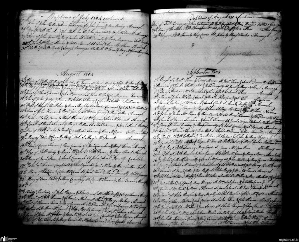 Armagh; County of Armagh; Archdiocese of Armagh. Baptisms, July 1804 to Sep. 1804