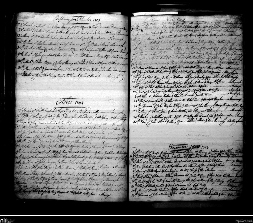 Armagh; County of Armagh; Archdiocese of Armagh. Baptisms, Sep. 1804 to Dec. 1804