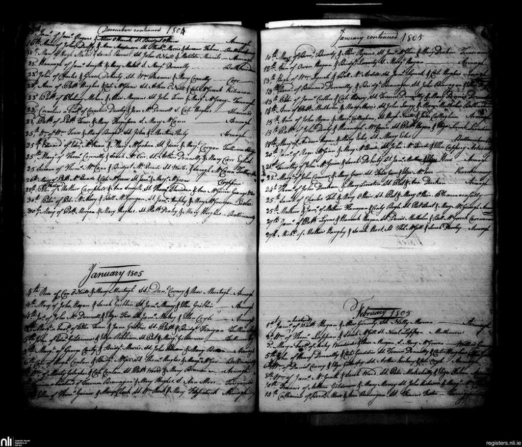 Armagh; County of Armagh; Archdiocese of Armagh. Baptisms, Dec. 1804 to Feb. 1805