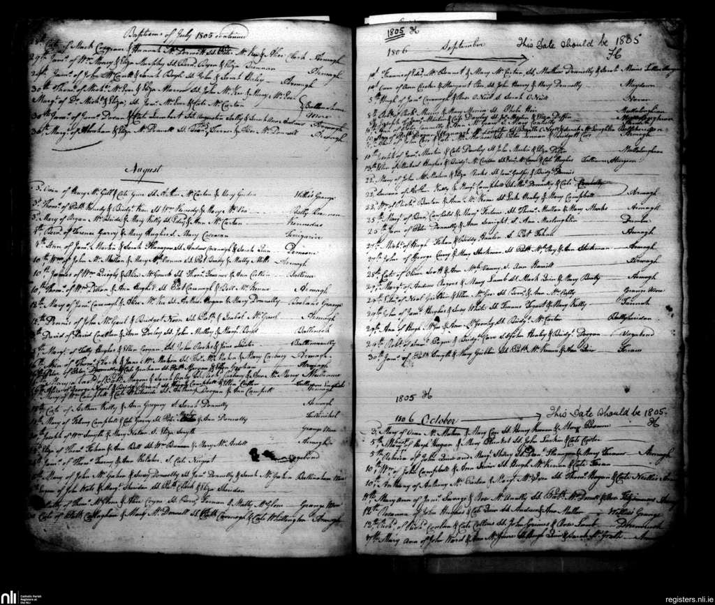 Armagh; County of Armagh; Archdiocese of Armagh. Baptisms, July 1805 to Oct. 1805