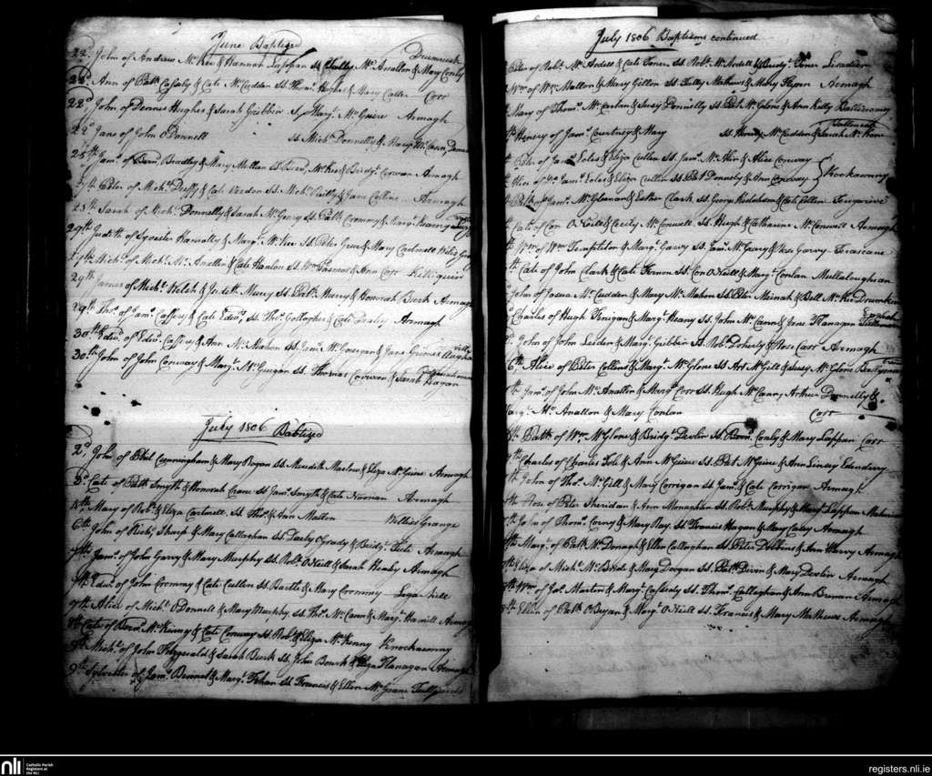 Armagh; County of Armagh; Archdiocese of Armagh. Baptisms, June 1806 to July 1806