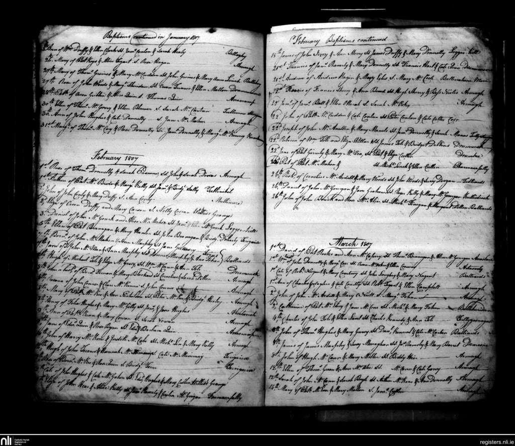 Armagh; County of Armagh; Archdiocese of Armagh. Baptisms, Jan. 1807 to Mar. 1807