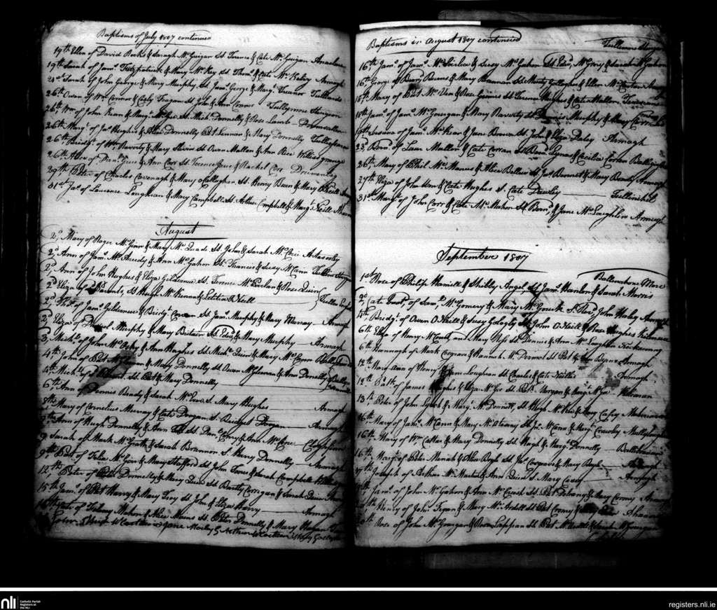 Armagh; County of Armagh; Archdiocese of Armagh. Baptisms, July 1807 to Sep. 1807