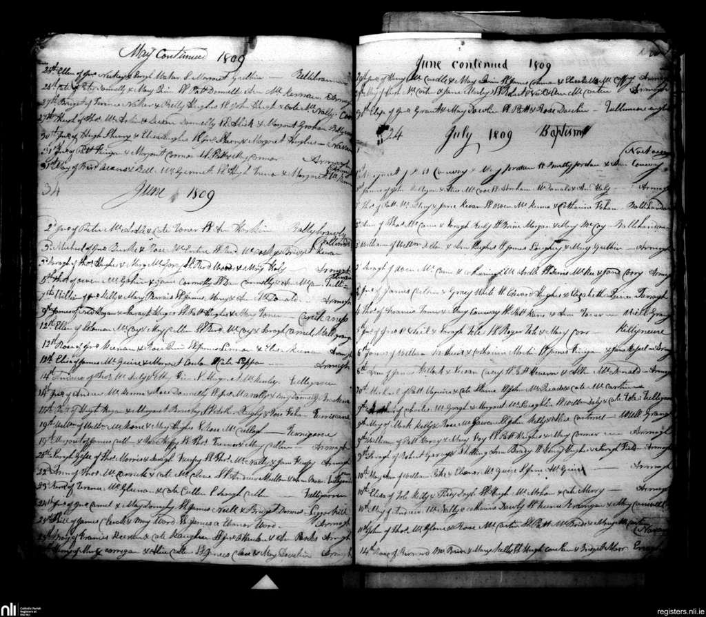 Armagh; County of Armagh; Archdiocese of Armagh. Baptisms, May 1809 to July 1809