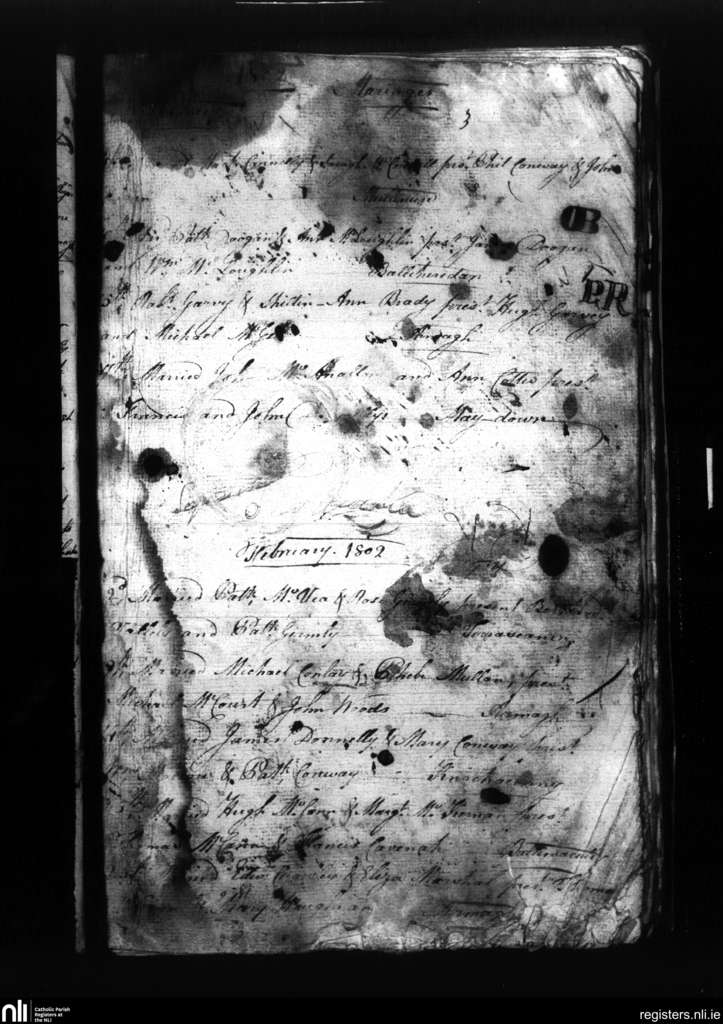 Armagh; County of Armagh; Archdiocese of Armagh. Marriages, Jan. 1802 to Feb. 1802