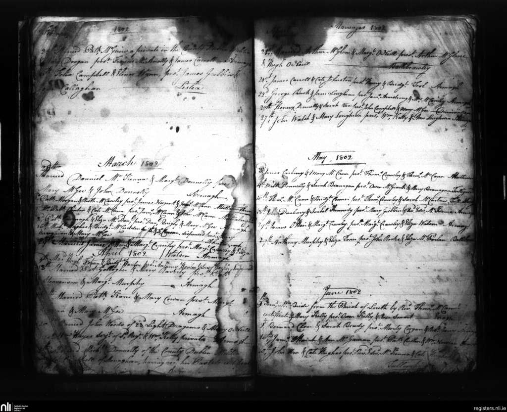 Armagh; County of Armagh; Archdiocese of Armagh. Marriages, Feb. 1802 to June 1802