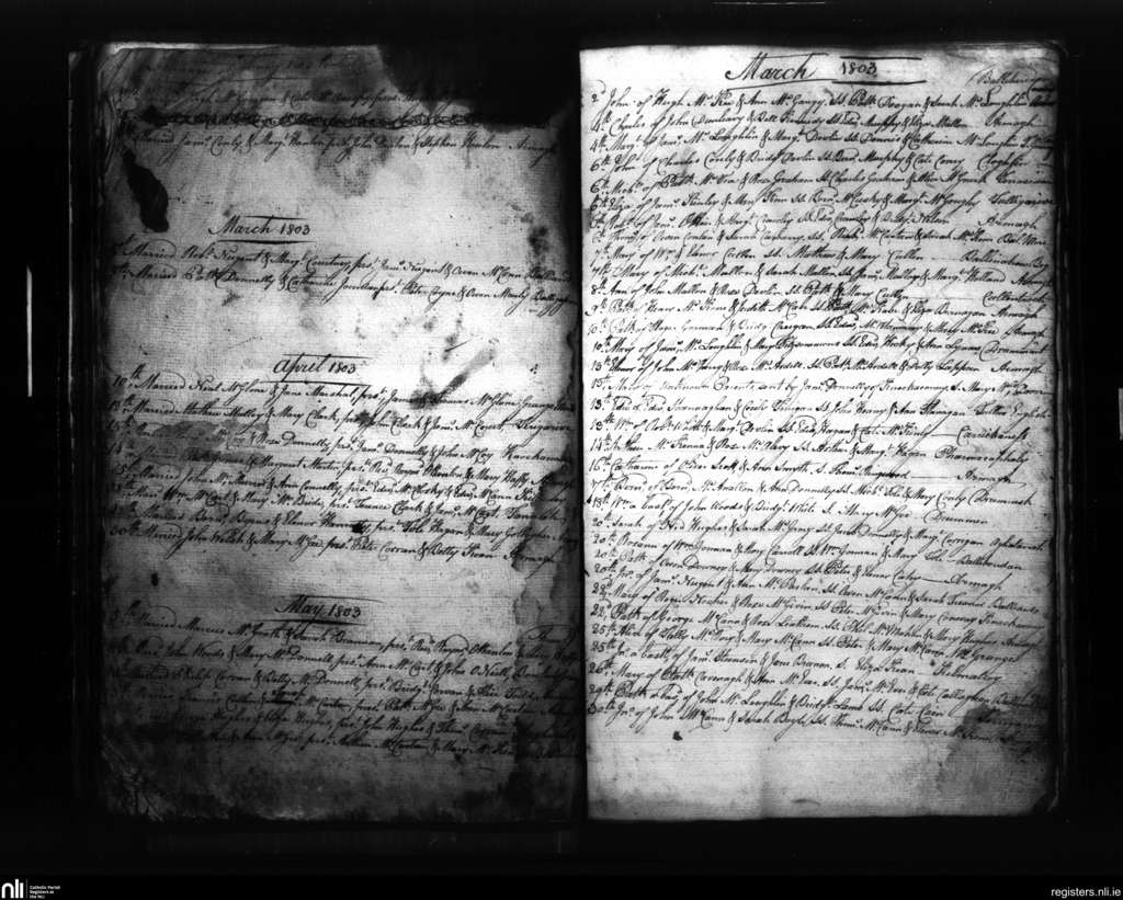 Armagh; County of Armagh; Archdiocese of Armagh. Marriages, Feb. 1803 to May 1803
