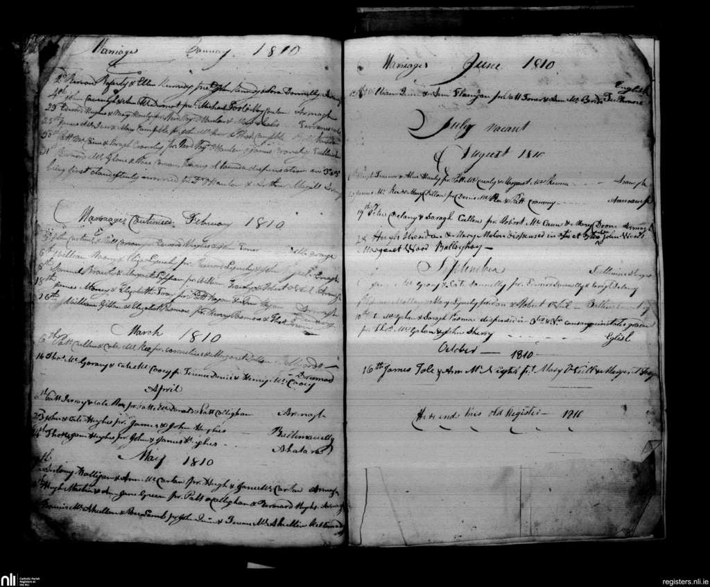 Armagh; County of Armagh; Archdiocese of Armagh. Marriages, Jan. 1810 to Oct. 1810