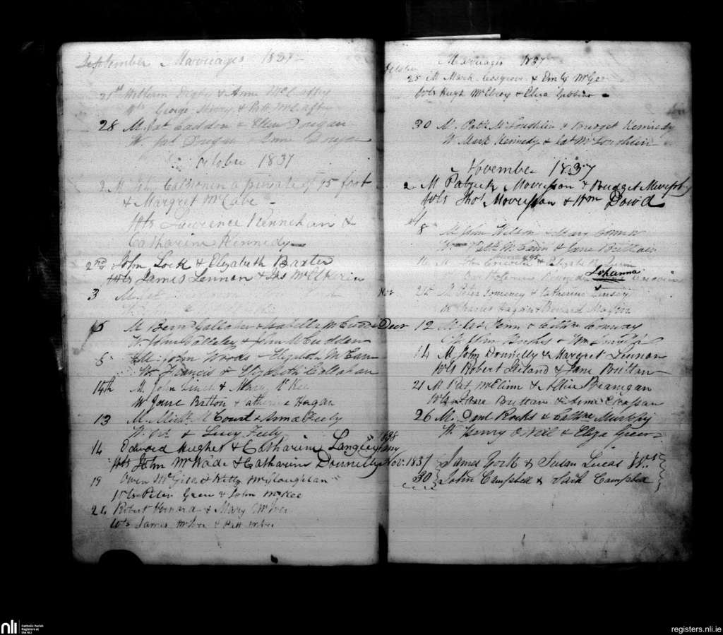 Armagh; County of Armagh; Archdiocese of Armagh. Marriages, Sep. 1837 to Jan. 1838