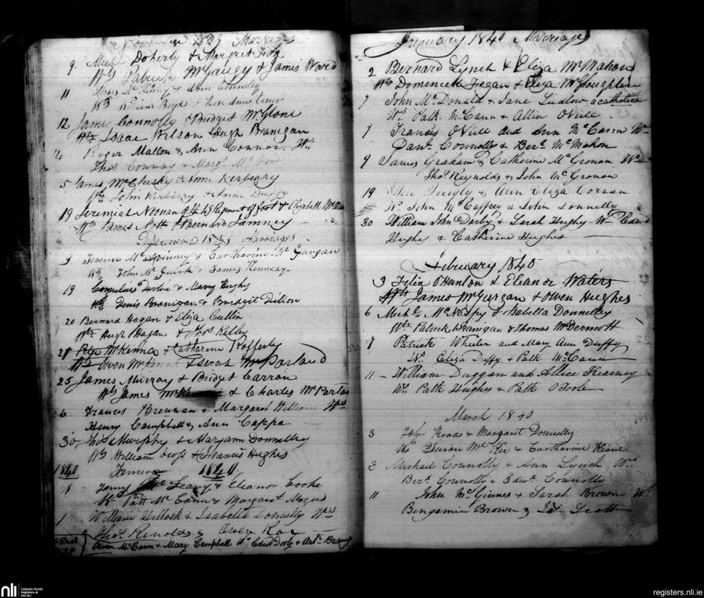 Armagh; County of Armagh; Archdiocese of Armagh. Marriages, Nov. 1839 to Mar. 1840