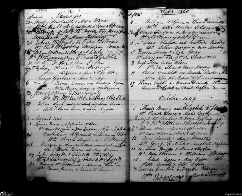 Armagh; County of Armagh; Archdiocese of Armagh. Marriages, June 1840 to Oct. 1840
