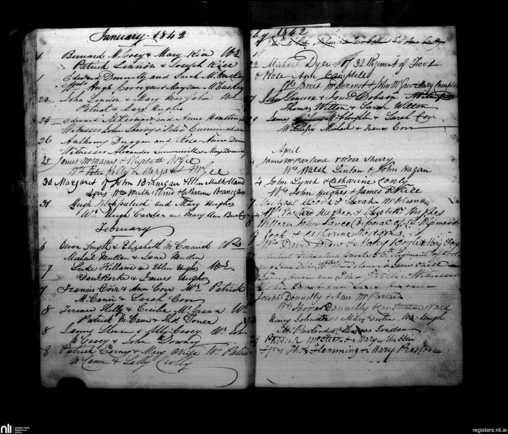 Armagh; County of Armagh; Archdiocese of Armagh. Marriages, Jan. 1842 to Apr. 1842