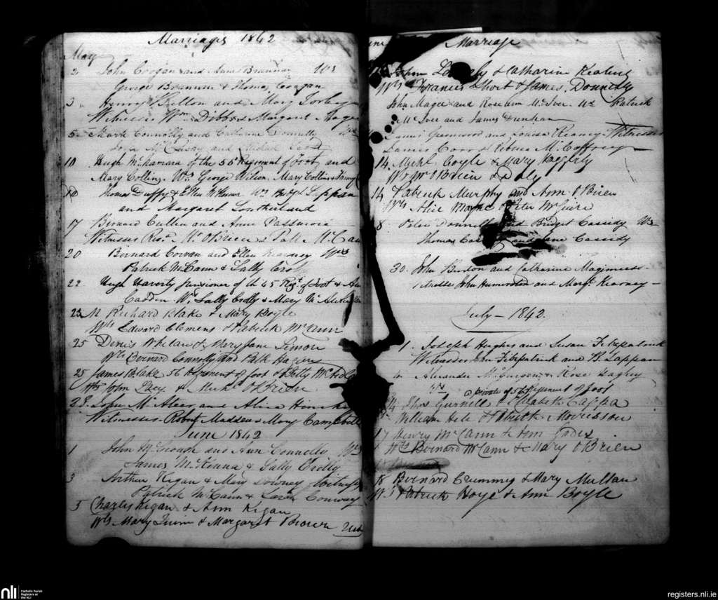 Armagh; County of Armagh; Archdiocese of Armagh. Marriages, May 1842 to July 1842