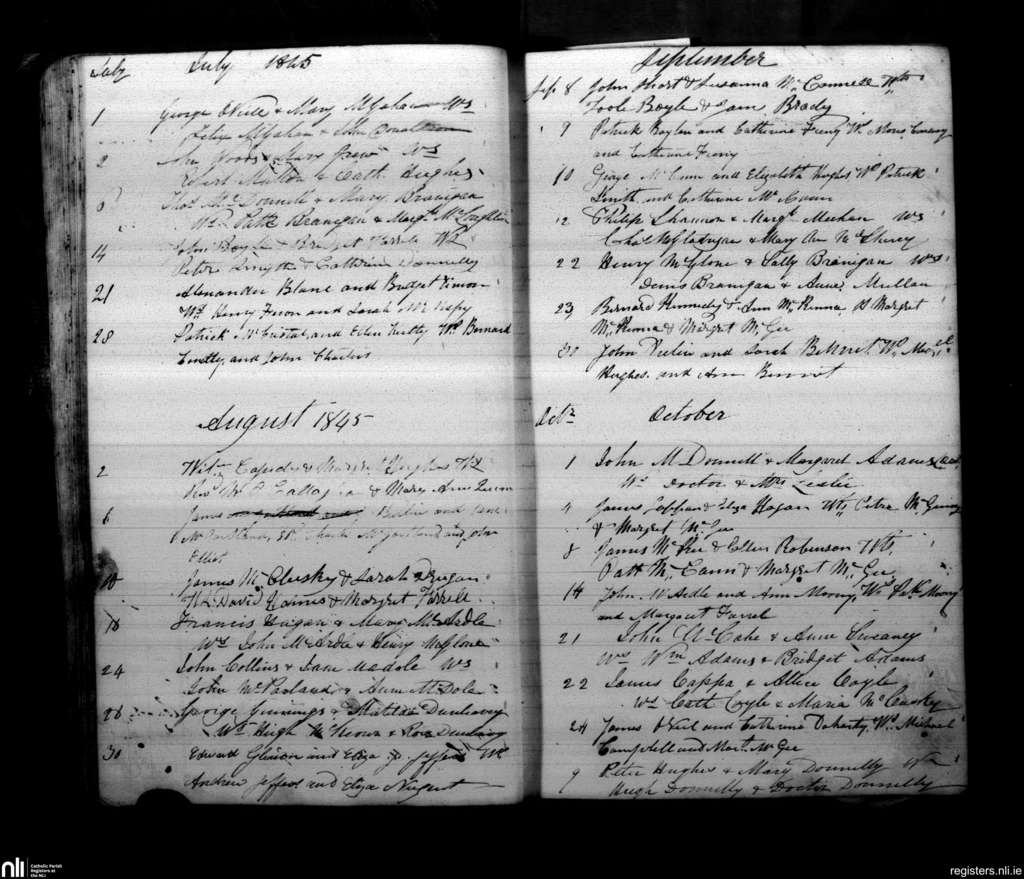 Armagh; County of Armagh; Archdiocese of Armagh. Marriages, July 1845 to Oct. 1845