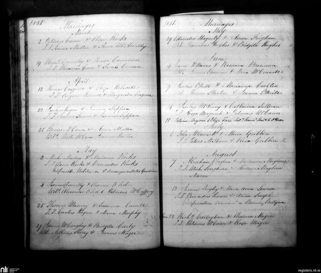 Armagh; County of Armagh; Archdiocese of Armagh. Marriages, Mar. 1851 to Aug. 1851