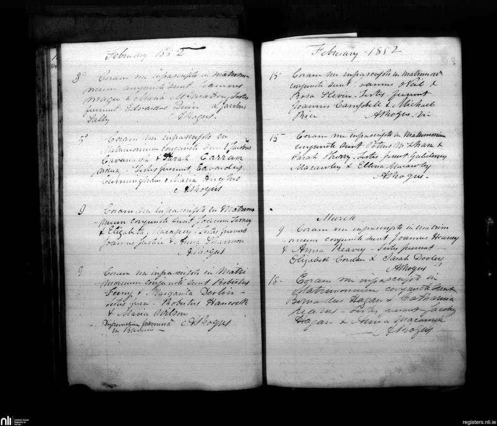 Armagh; County of Armagh; Archdiocese of Armagh. Marriages, Feb. 1852 to Mar. 1852