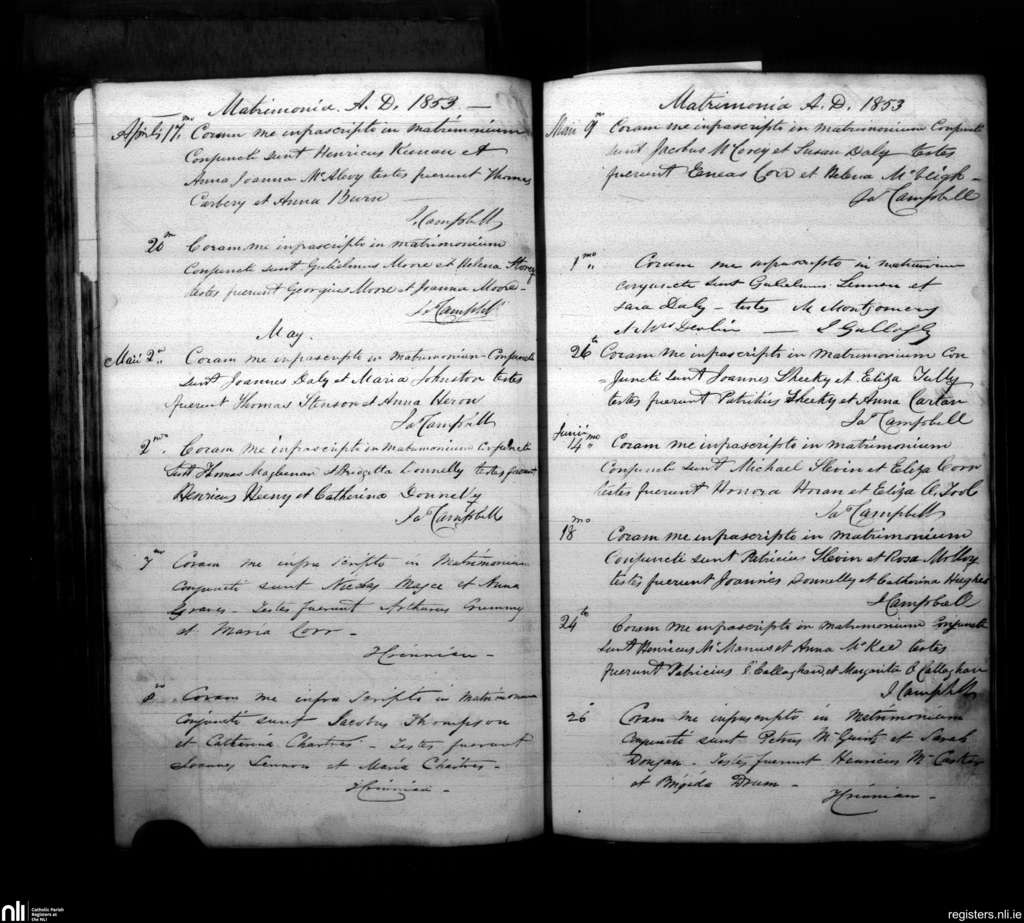 Armagh; County of Armagh; Archdiocese of Armagh. Marriages, Apr. 1853 to June 1853