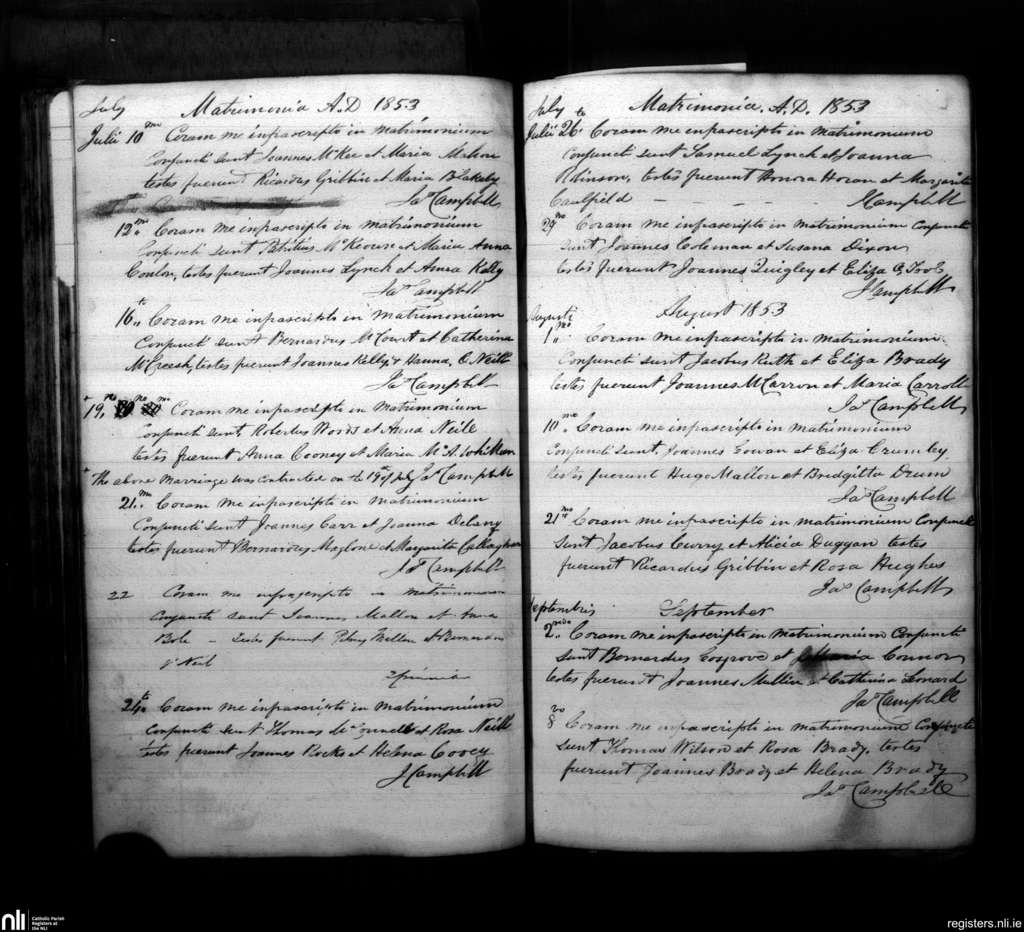 Armagh; County of Armagh; Archdiocese of Armagh. Marriages, July 1853 to Sep. 1853