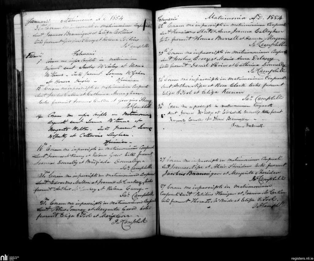 Armagh; County of Armagh; Archdiocese of Armagh. Marriages, Jan. 1854 to Feb. 1854