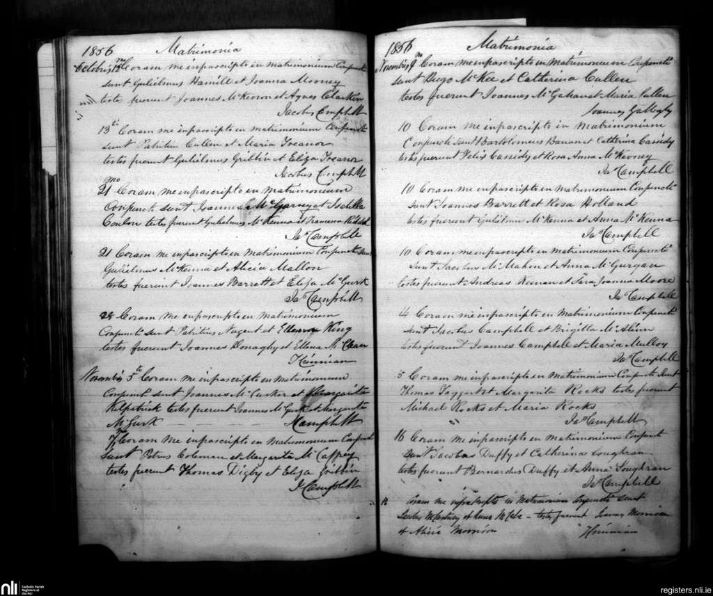 Armagh; County of Armagh; Archdiocese of Armagh. Marriages, Oct. 1856 to Nov. 1856