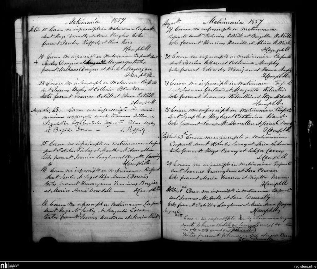 Armagh; County of Armagh; Archdiocese of Armagh. Marriages, July 1857 to Oct. 1857