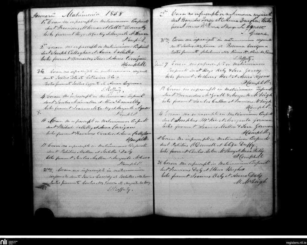 Armagh; County of Armagh; Archdiocese of Armagh. Marriages, Jan. 1858 to Feb. 1858