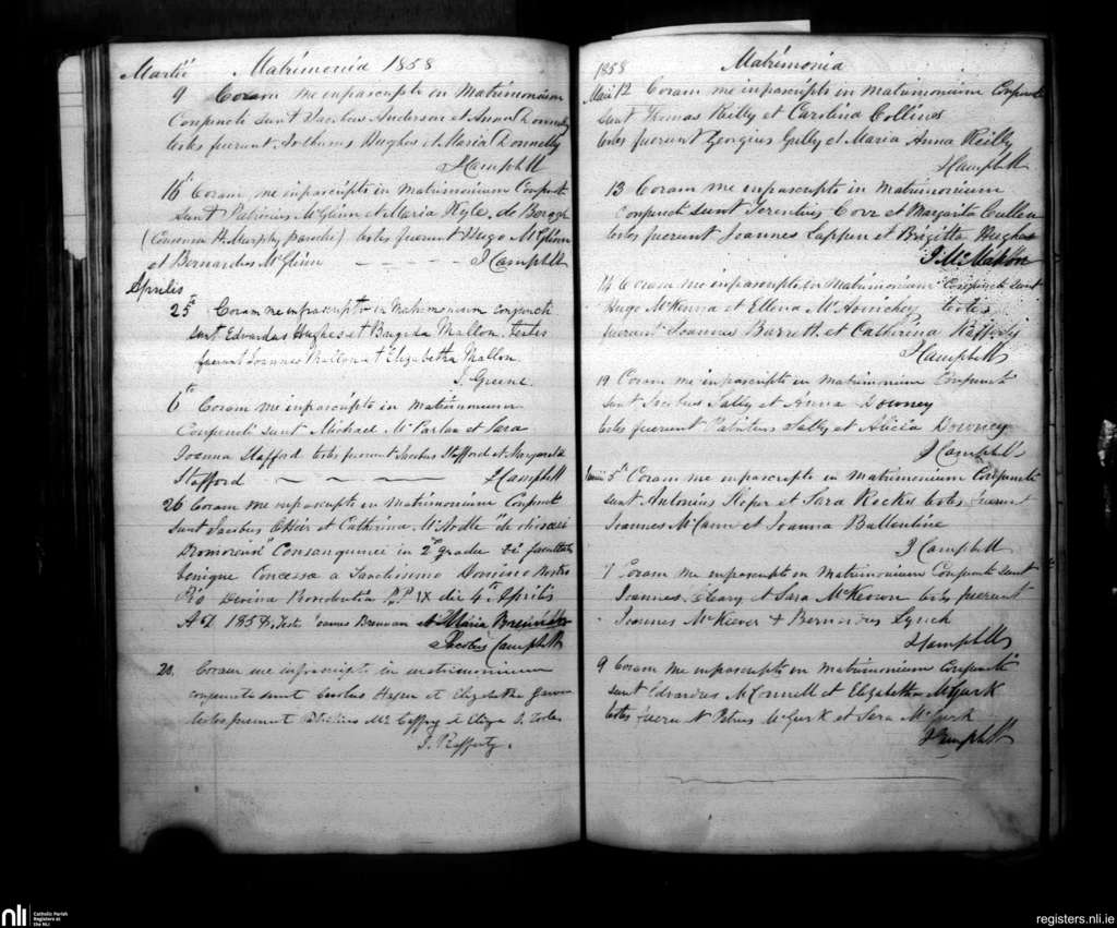 Armagh; County of Armagh; Archdiocese of Armagh. Marriages, Mar. 1858 to June 1858