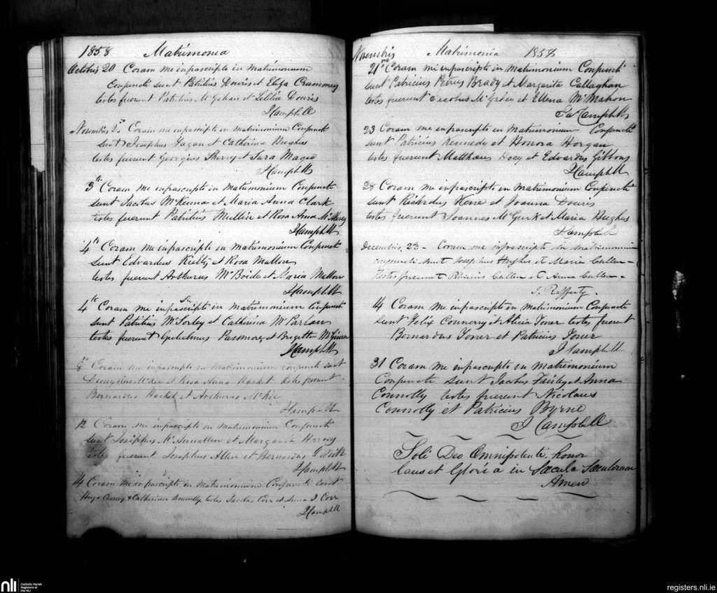 Armagh; County of Armagh; Archdiocese of Armagh. Marriages, Oct. 1858 to Dec. 1858