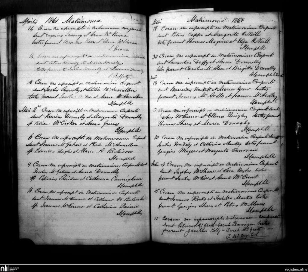 Armagh; County of Armagh; Archdiocese of Armagh. Marriages, Apr. 1861 to July 1861