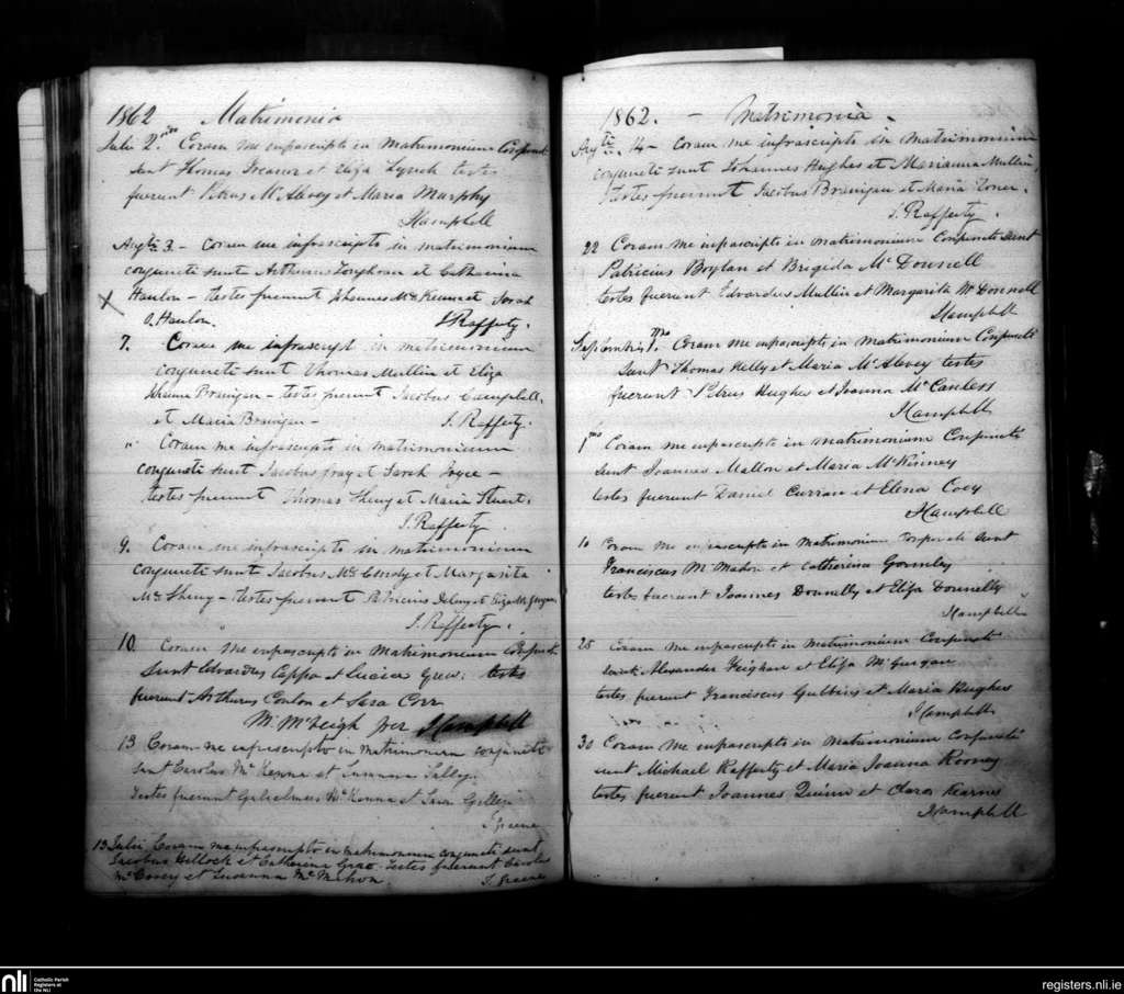 Armagh; County of Armagh; Archdiocese of Armagh. Marriages, July 1862 to Sep. 1862