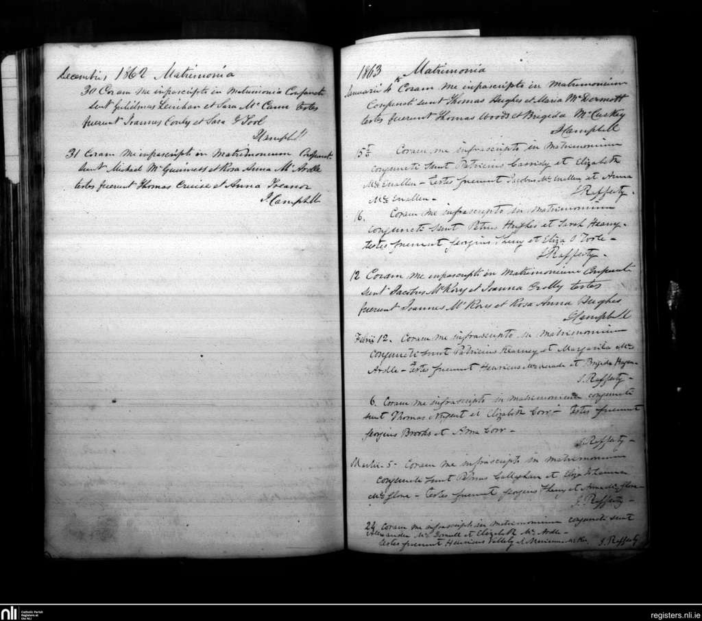 Armagh; County of Armagh; Archdiocese of Armagh. Marriages, Dec. 1862 to Mar. 1863