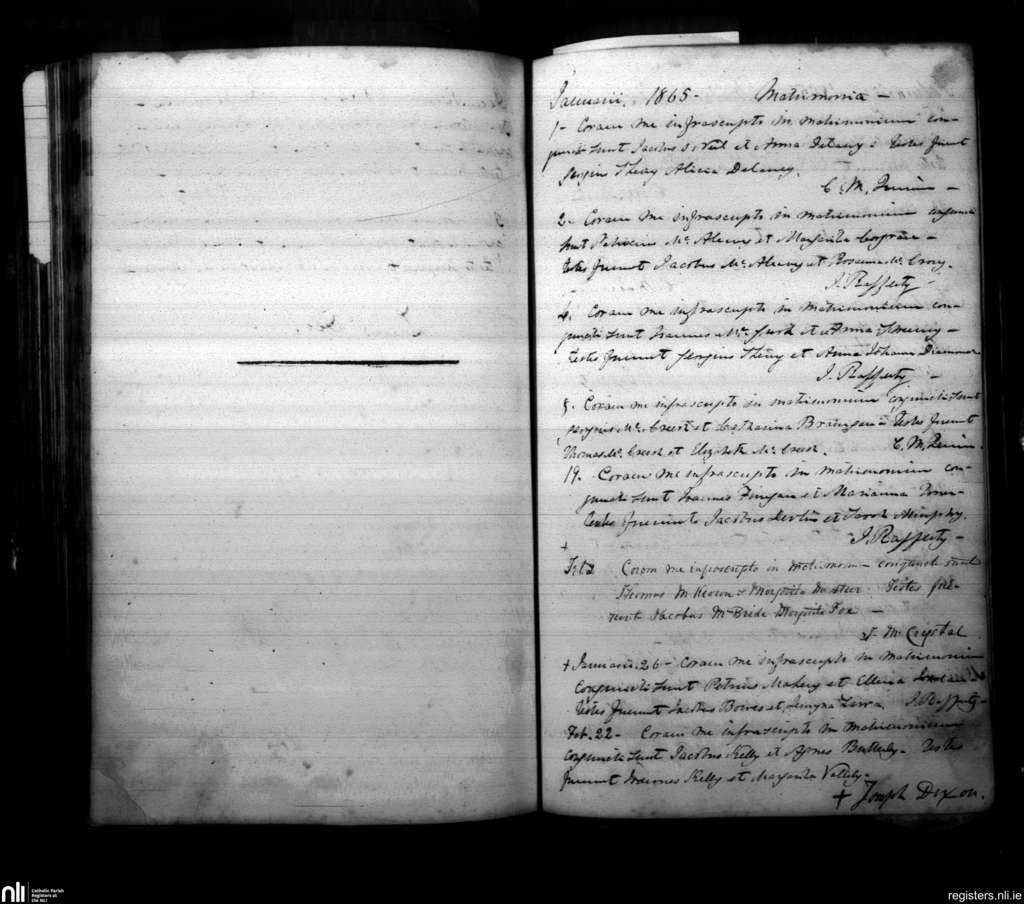 Armagh; County of Armagh; Archdiocese of Armagh. Marriages, Jan. 1865 to Feb. 1865