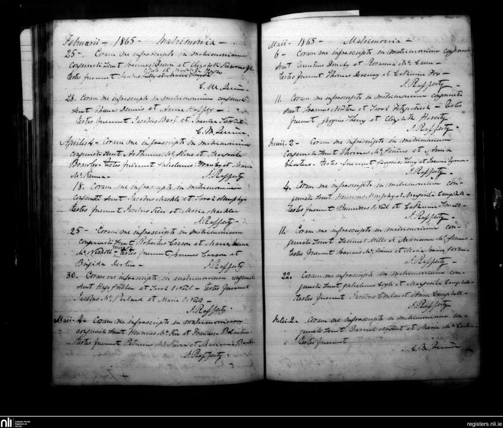 Armagh; County of Armagh; Archdiocese of Armagh. Marriages, Feb. 1865 to July 1865