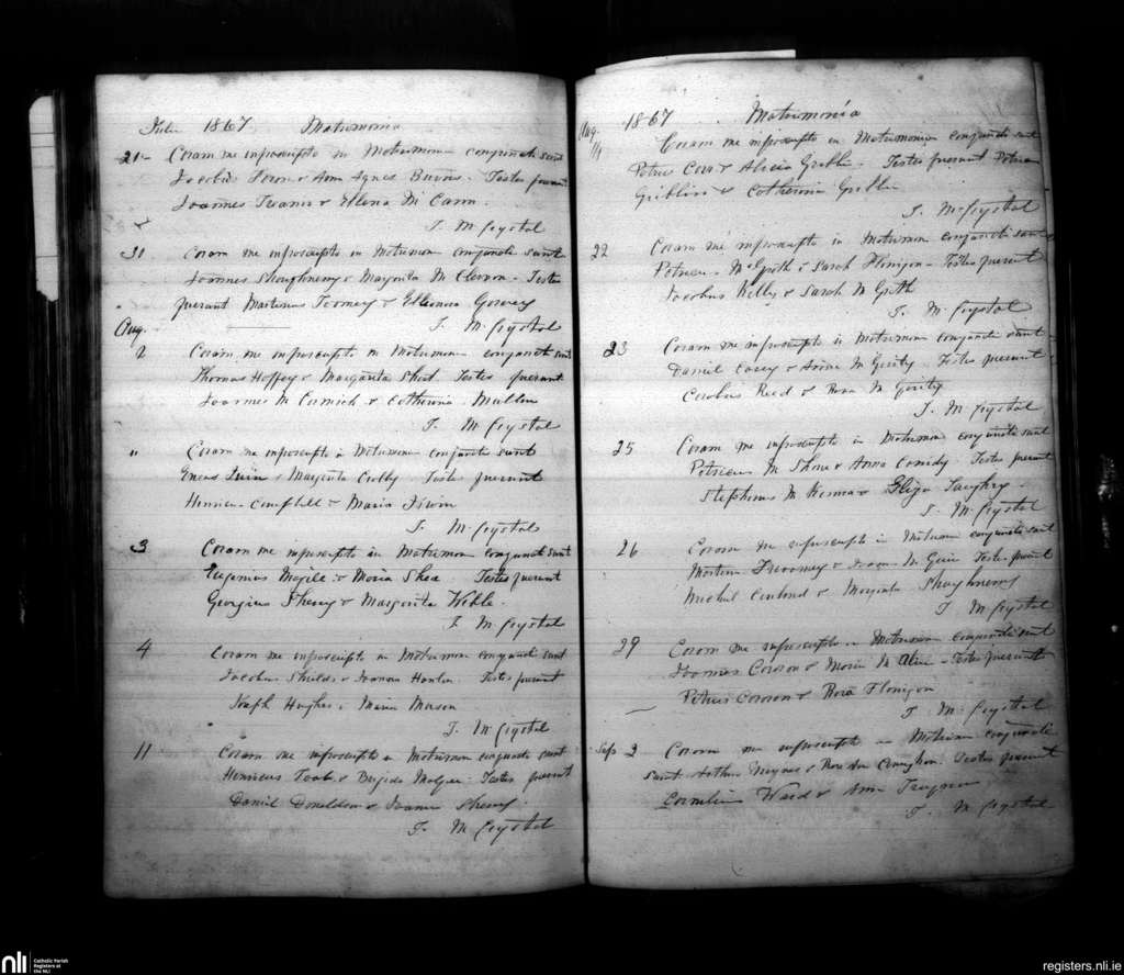 Armagh; County of Armagh; Archdiocese of Armagh. Marriages, July 1867 to Sep. 1867