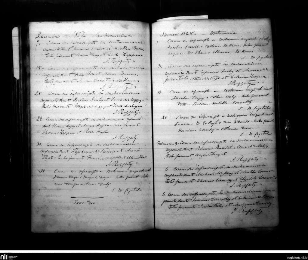Armagh; County of Armagh; Archdiocese of Armagh. Marriages, Dec. 1867 to Feb. 1868
