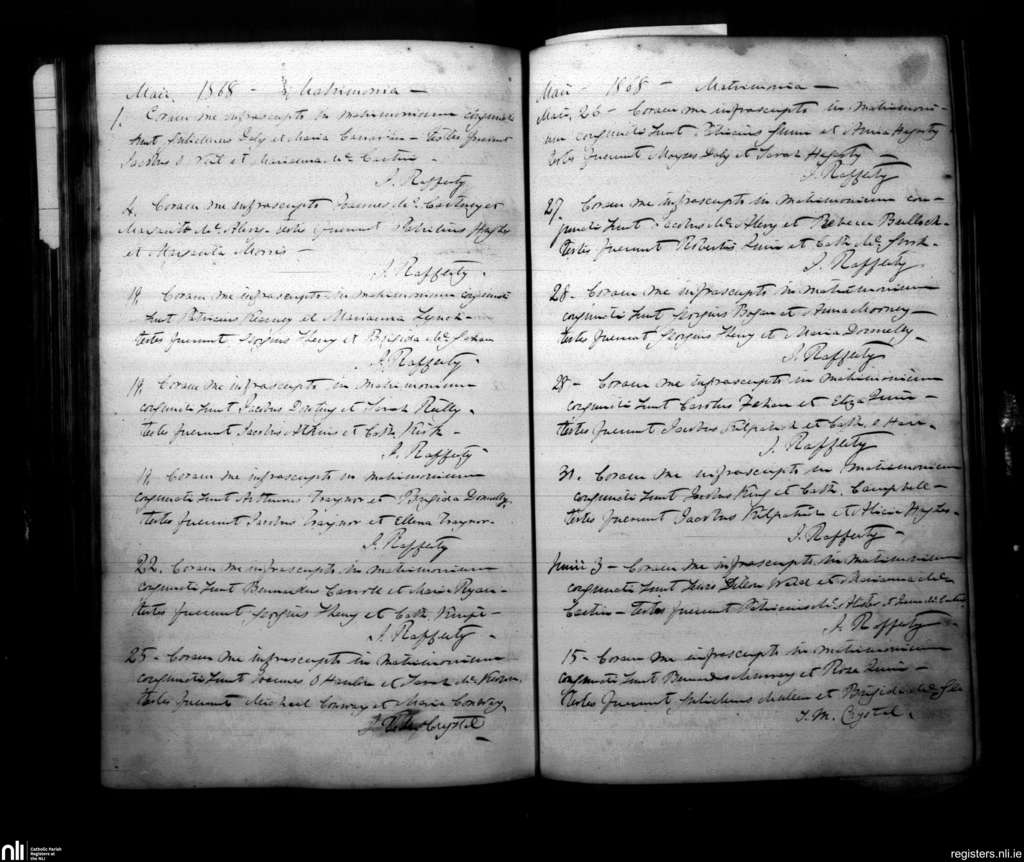 Armagh; County of Armagh; Archdiocese of Armagh. Marriages, May 1868 to June 1868