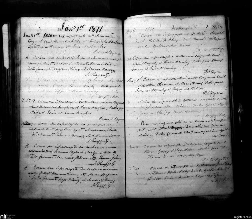 Armagh; County of Armagh; Archdiocese of Armagh. Marriages, Jan. 1871 to June 1871