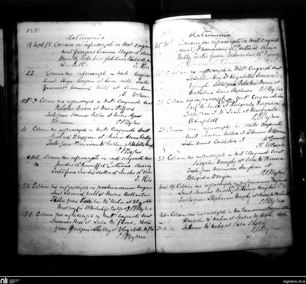 Armagh; County of Armagh; Archdiocese of Armagh. Marriages, Sep. 1875 to Dec. 1875