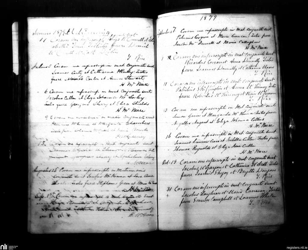Armagh; County of Armagh; Archdiocese of Armagh. Marriages, June 1879 to Oct. 1879