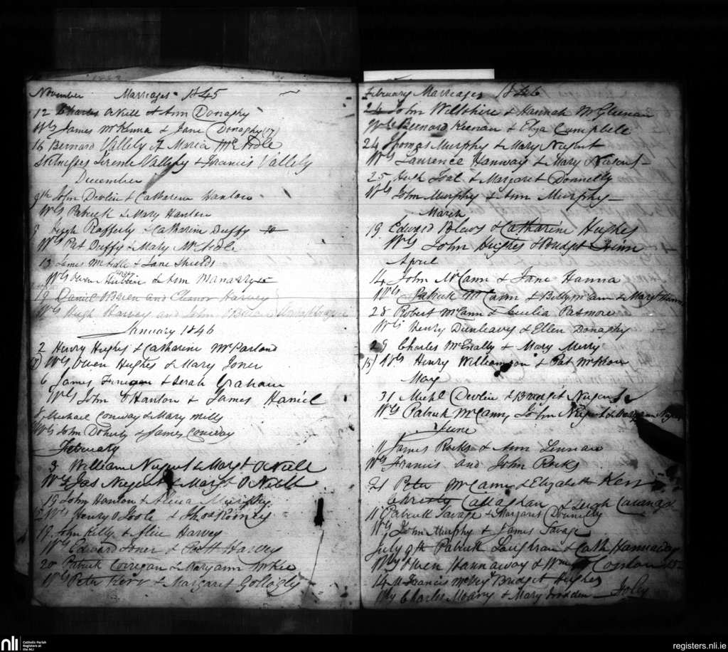 Ballymacnab; County of Armagh; Archdiocese of Armagh. Marriages, Nov. 1845 to July 1846