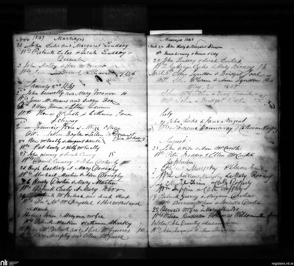 Ballymacnab; County of Armagh; Archdiocese of Armagh. Marriages, Jan. 1847 to Oct. 1848