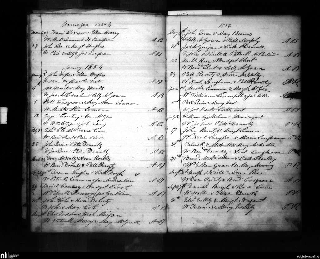 Ballymacnab; County of Armagh; Archdiocese of Armagh. Marriages, Dec. 1853 to Sep. 1854