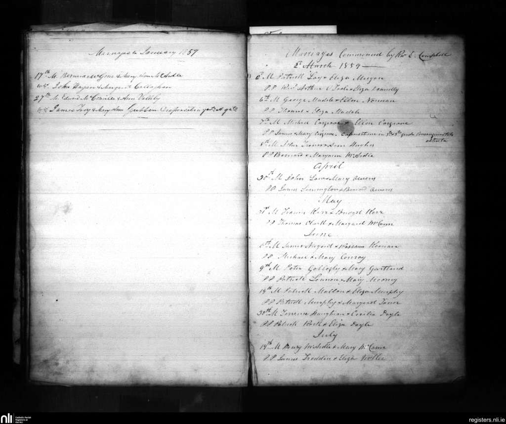 Ballymacnab; County of Armagh; Archdiocese of Armagh. Marriages, Jan. 1859 to July 1859