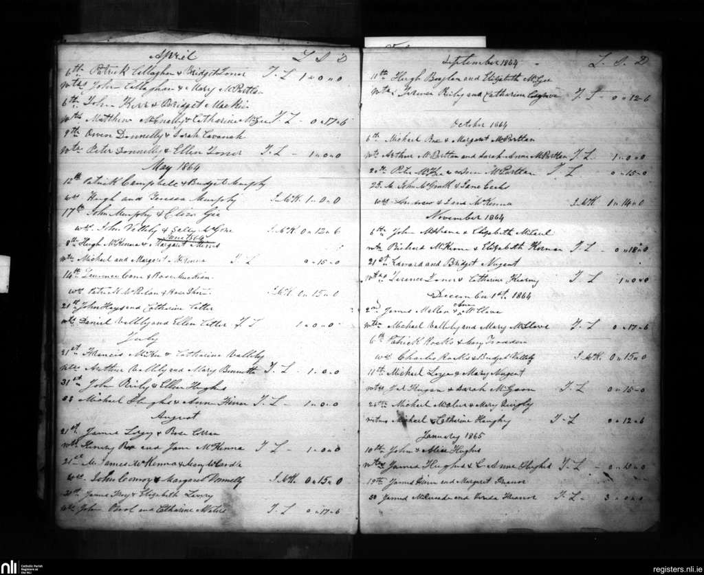 Ballymacnab; County of Armagh; Archdiocese of Armagh. Marriages, Apr. 1864 to Jan. 1865