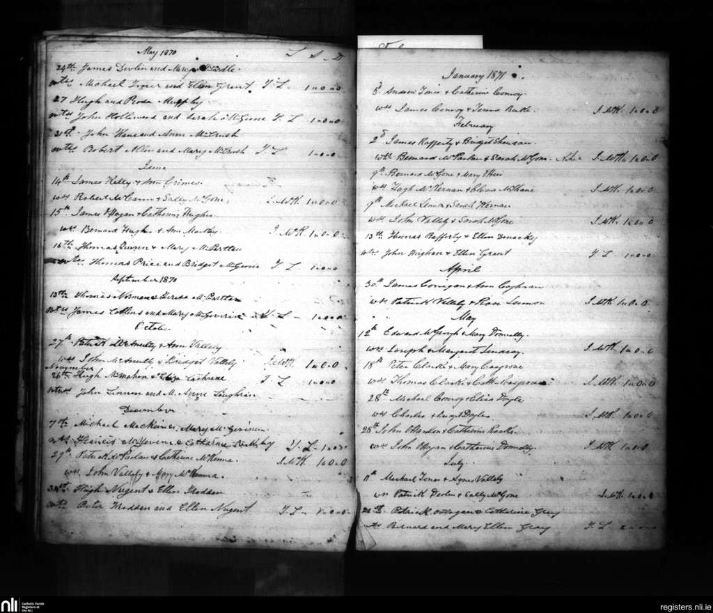 Ballymacnab; County of Armagh; Archdiocese of Armagh. Marriages, May 1870 to July 1871