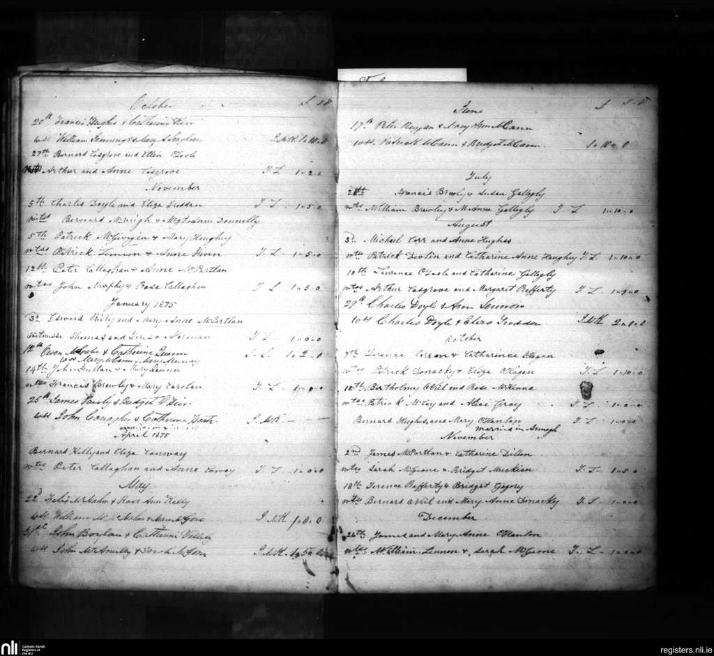 Ballymacnab; County of Armagh; Archdiocese of Armagh. Marriages, Oct. 1874 to Dec. 1875