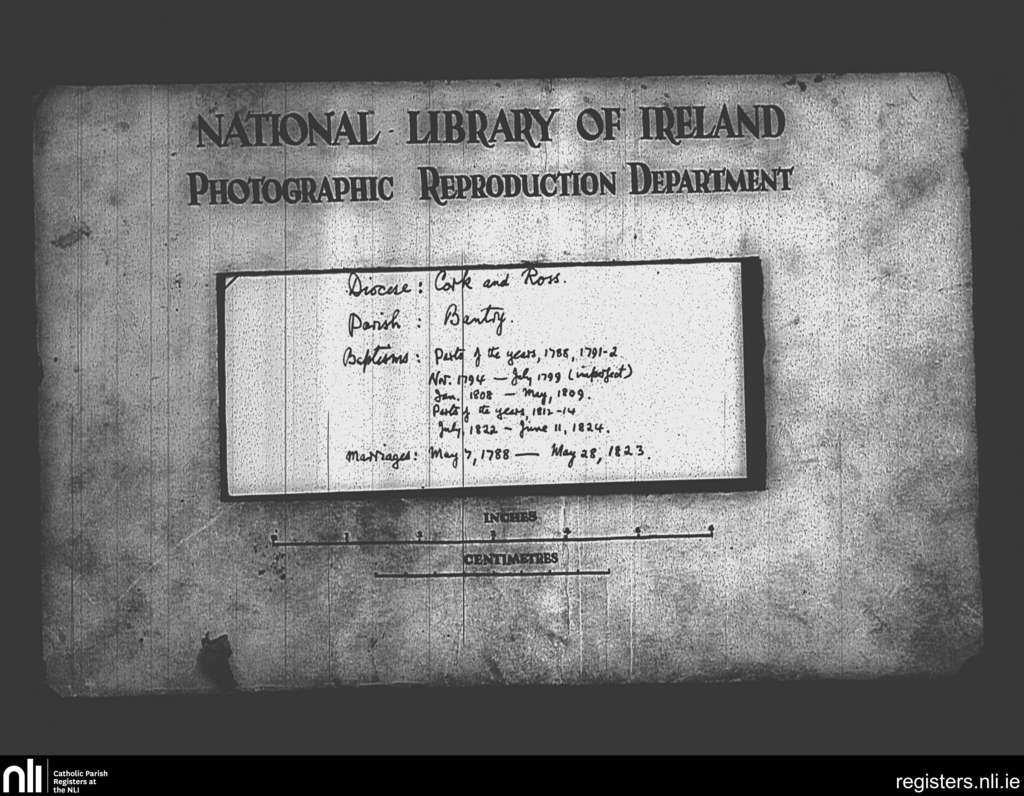 Bantry; County of Cork; Diocese of Cork and Ross. Baptisms, Marriages