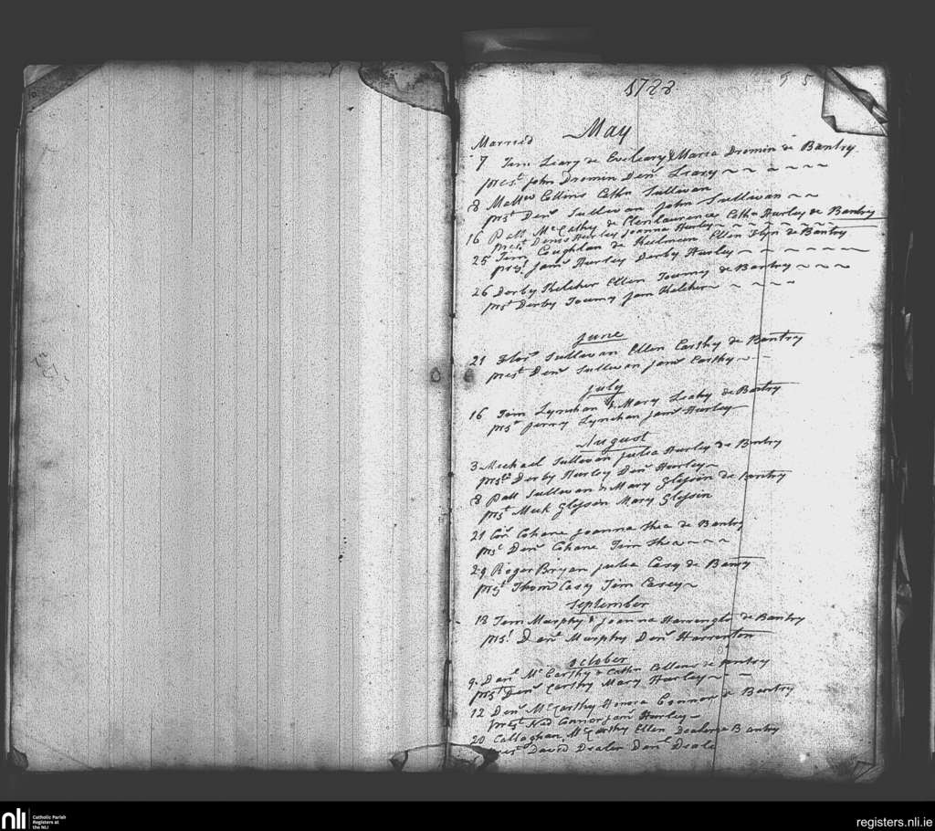 Bantry; County of Cork; Diocese of Cork and Ross. Marriages, May 1788 to Oct. 1788