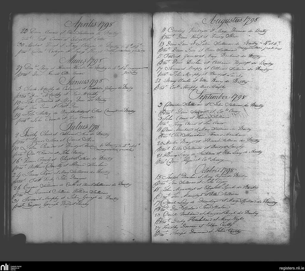 Bantry; County of Cork; Diocese of Cork and Ross. Marriages, Apr. 1798 to Oct. 1798