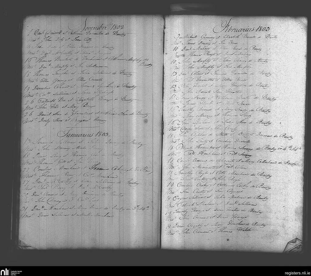 Bantry; County of Cork; Diocese of Cork and Ross. Marriages, Nov. 1802 to Feb. 1803